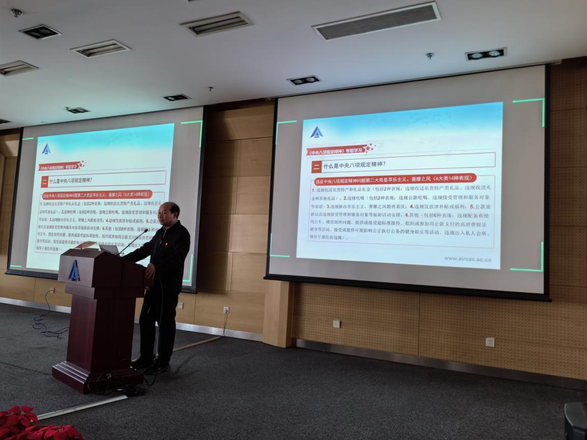 11月14日,八部党总支在新技术园区B座B801会议室召开全体职工和在读研究生大会,会议采用线上与线下结合的方式,八部全体职工和在读研究生参会。会上,何国金同志传达了空天院关于认真组织学习《习近平谈治国理政》第五卷的通知以及《关于认真开展深入贯彻中央八项规定精神学习教育总结工作的通知》,深入解读了党的二十届四中全会公报以及《习近平谈治国理政》第五卷的主要内容,同时对八部党总支深入贯彻中央八项规定精神学习教育情况进行了总结。会议要求八部各基层党支部通过“ 三会一课 ”、 主题党日、 青年理论学习小组等方式,深入开展相关学习工作,并结合地面站的工作实际进行贯彻落实。