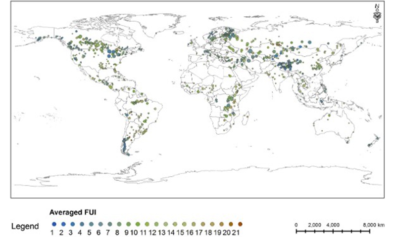 Average FUI of global large lakes and reservoirs Photo: Courtesy of Zhang Bing