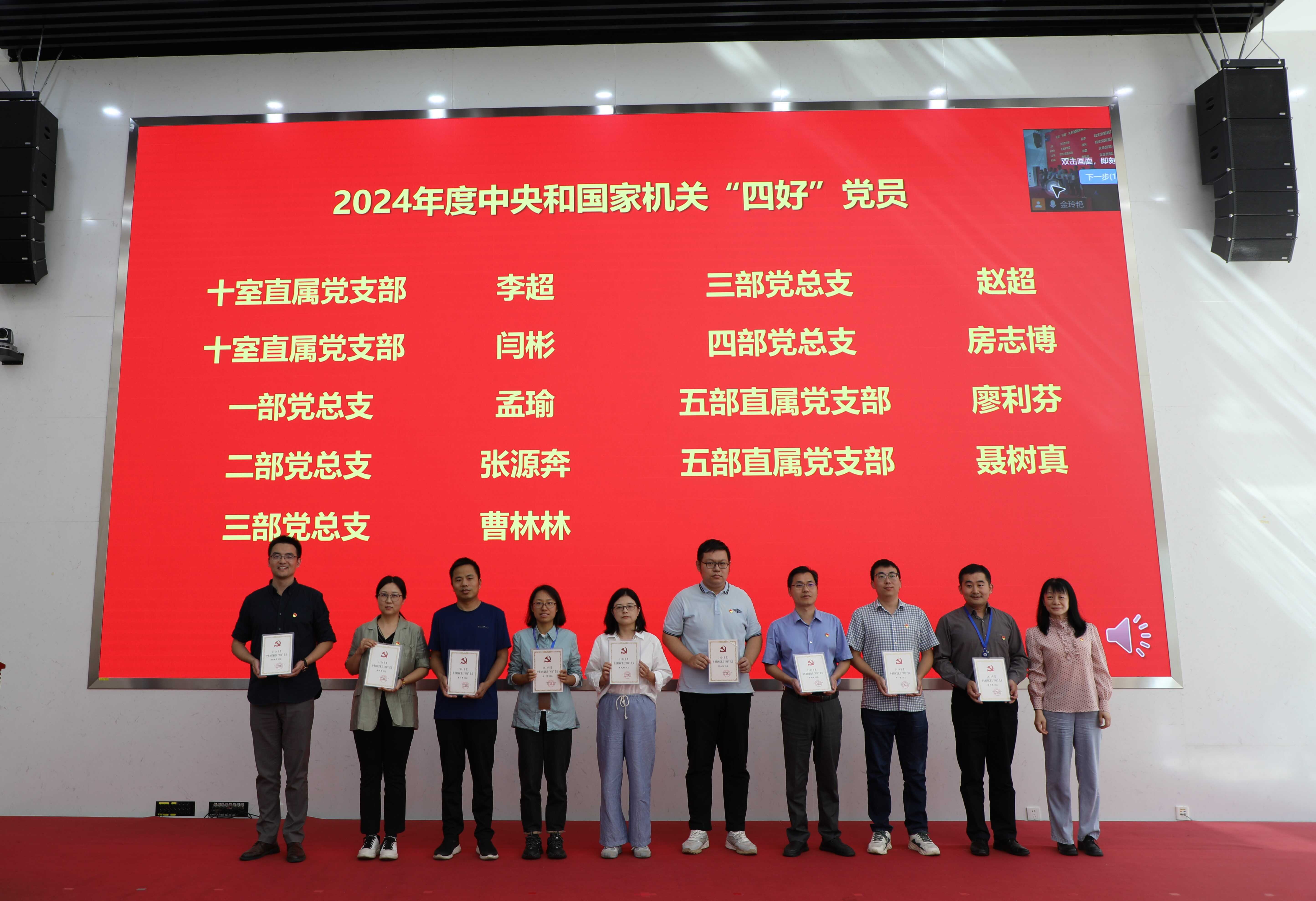 获得2024年度中央和国家机关“四好”党员、“四强”党支部颁奖现场