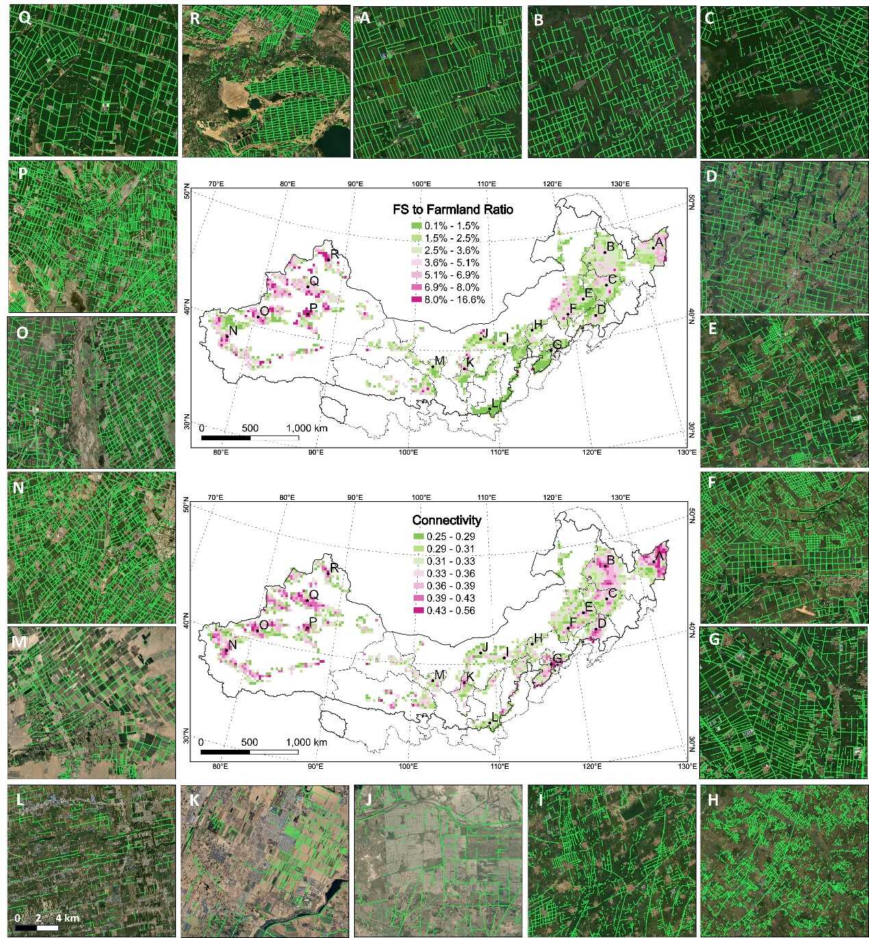 作为我国“三北”区域的重要组成部分,农田防护林(又称“防风林带”)在减少风蚀和防治土壤退化方面发挥着关键作用。然而,目前尚缺乏大范围的农田防护林产品,对其监测与优化带来了挑战。
