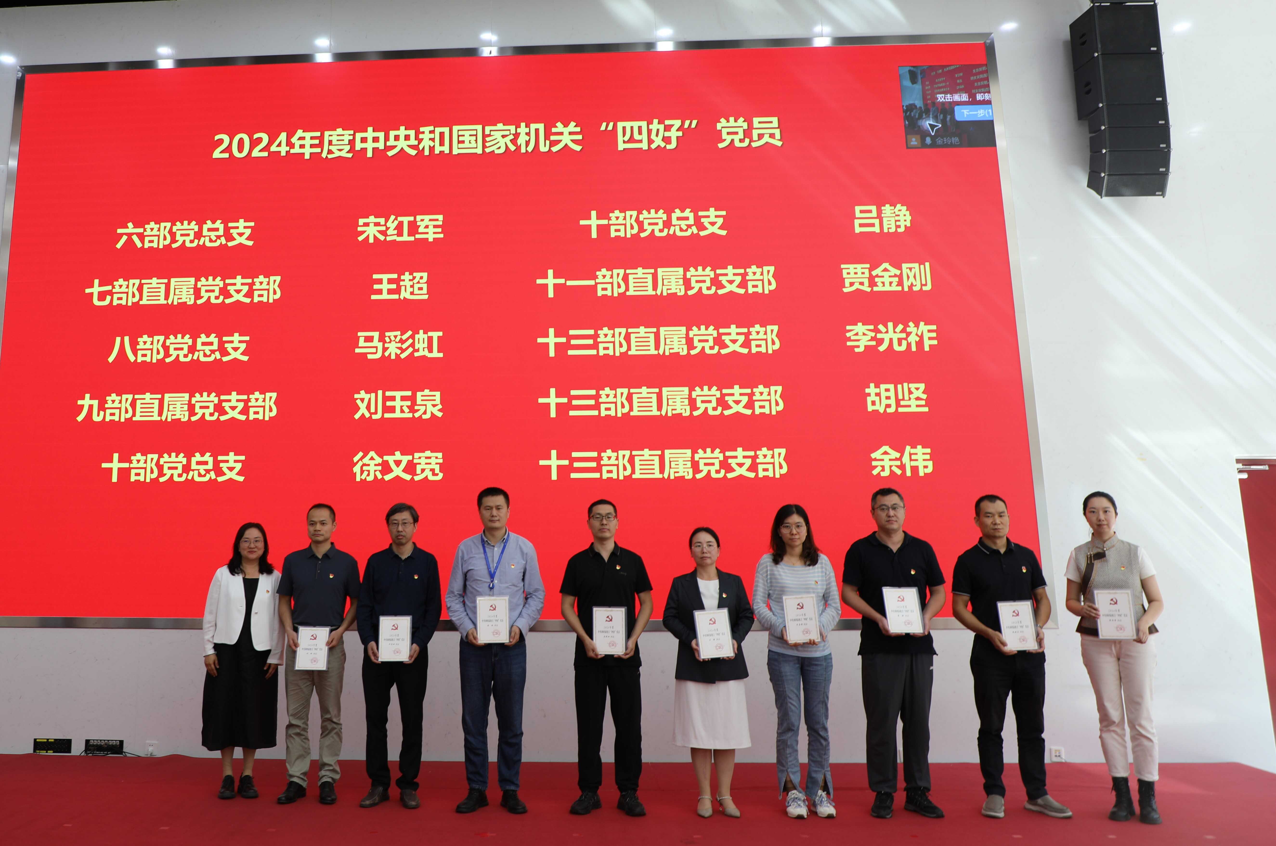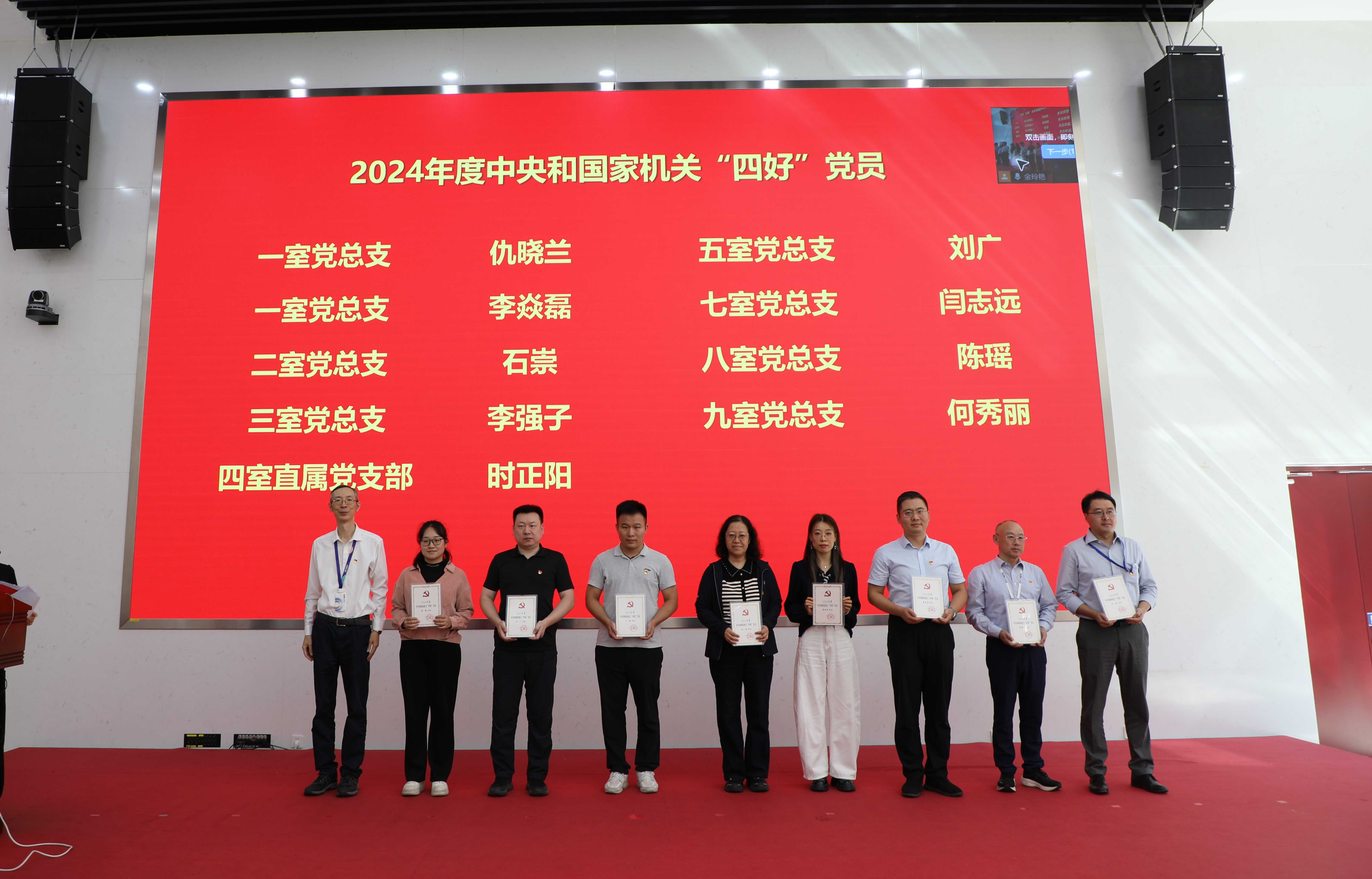 获得2024年度中央和国家机关“四好”党员、“四强”党支部颁奖现场