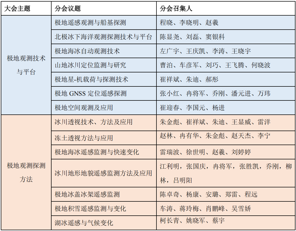1、极地观测技术与平台(主题召集人:程晓、陈显尧、张小红、李晓明、崔祥斌、朱迪、窦银科、郝彤)