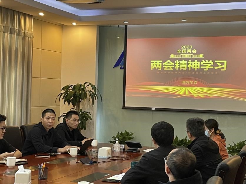 2023年4月26日上午,一室党总支职工党支部组织开展两会精神学习暨党员发展会,会议由支部书记曲佳萌主持,全体党员参加会议。