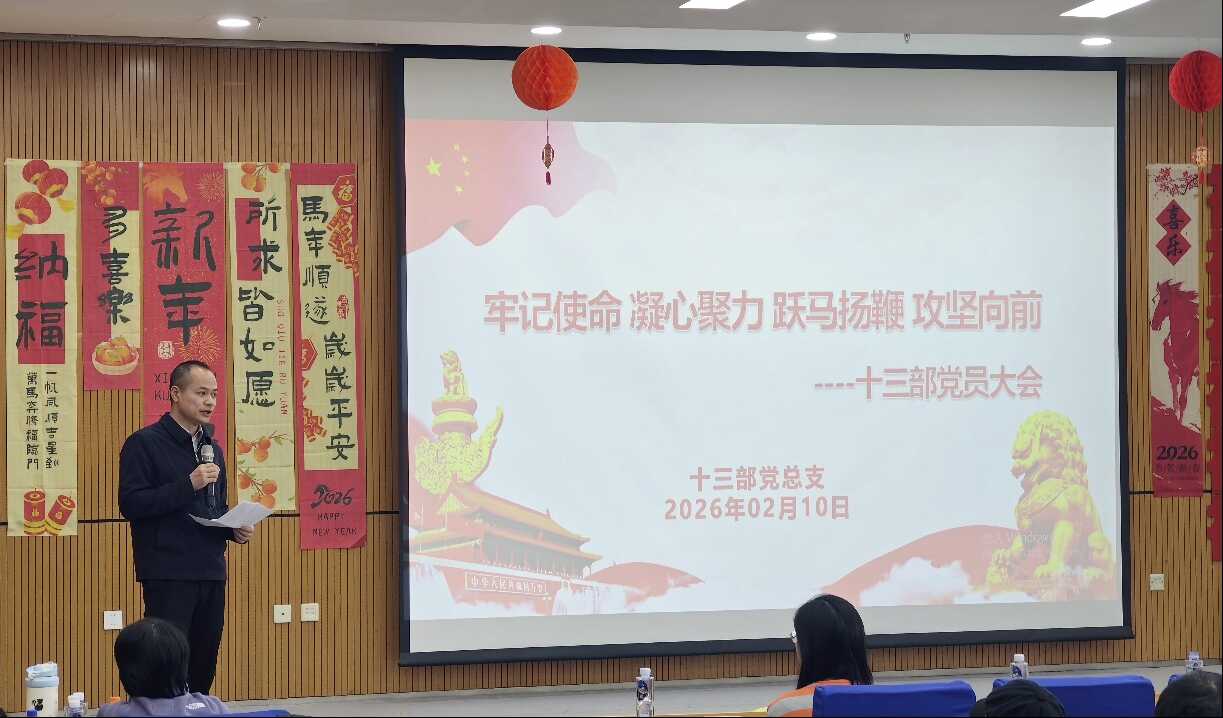 为深入学习贯彻习近平新时代中国特色社会主义思想,锤炼党员党性修养,凝聚攻坚克难的奋进力量,2月10日,十三部党总支以“牢记使命、凝心聚力、策马扬鞭、攻坚向前”为主题,将主题党日活动与年度工作交流座谈会有机结合,以党建引领聚魂、以工作部署聚力,全体党员及同事齐聚一堂,在回望奋斗历程中坚定初心,在明确攻坚目标中鼓足干劲,凝聚起推动部门高质量发展的强大合力。